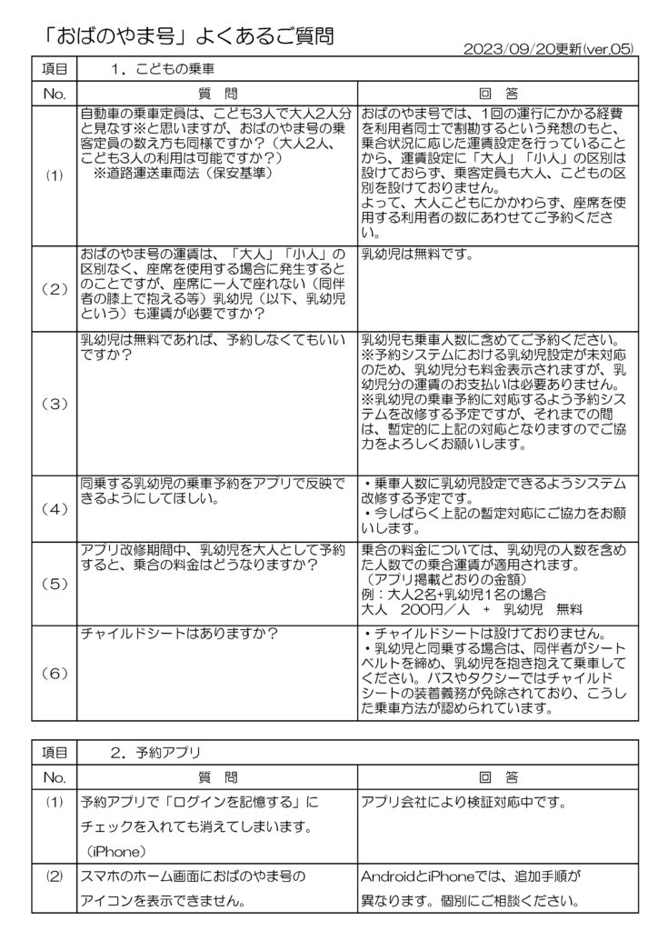 「おばのやま号」よくあるご質問