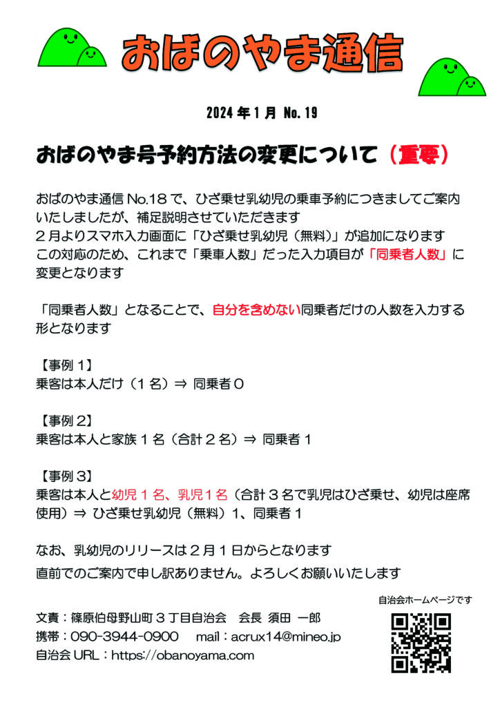 【重要】おばのやま通信2024年1月について
