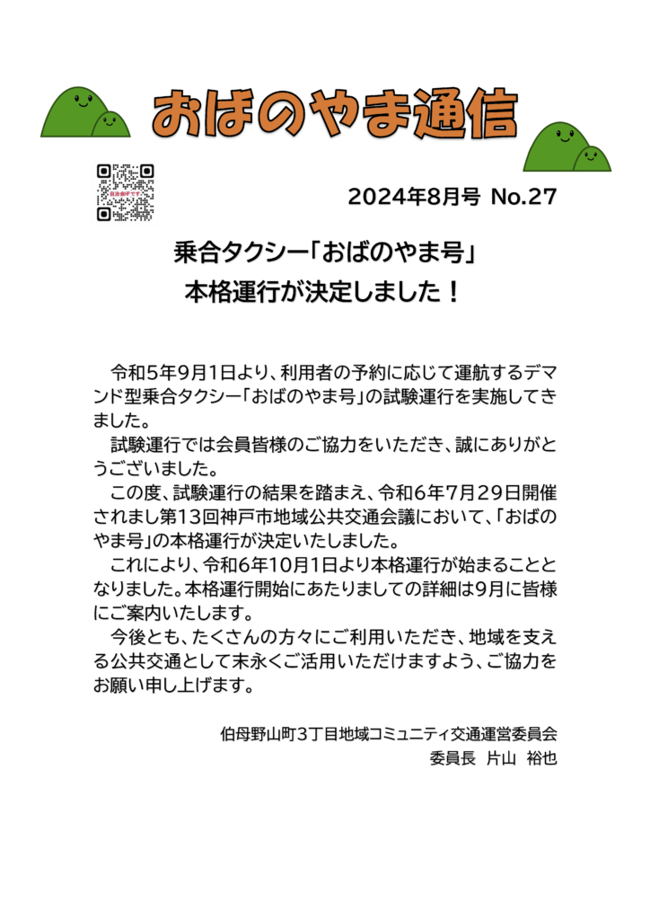 おばのやま通信2024年8月号No.27
